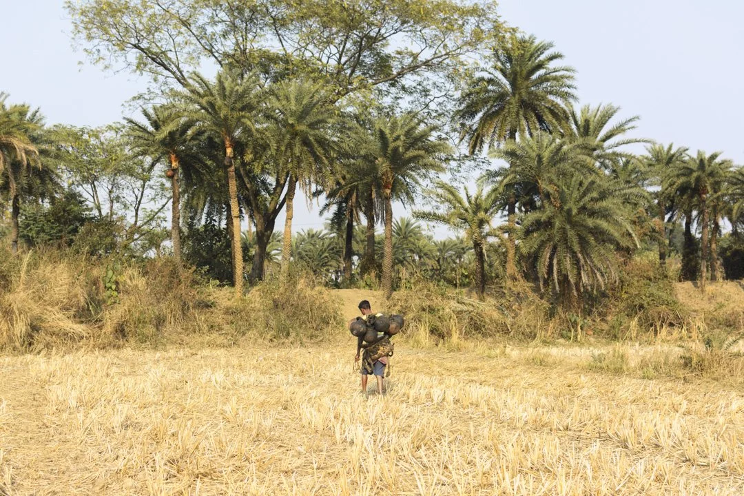 The makers of date sugar are mostly sharecroppers. Reduced agricultural activity in winter gives them an opportunity to earn through jaggery making. A typical tapper needs to tap at least a hundred trees to produce an economically viable amount of the sugar each day. Since a tree can be tapped once every three days, a tapper would need a large grove to sustain. This often leads them to travel far from home to remote areas. Once a sustainable grove is found, a tapper sets up his shack built with date leaves and continues to live there through the cold winter months in harsh and lonely conditions away from their families, producing the most favourite sweet savoury in Bengal.